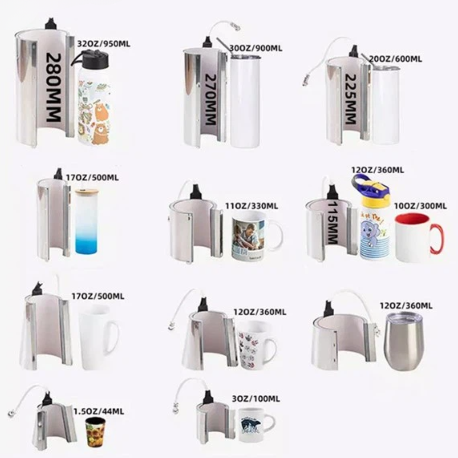 Es una termofijadora versátil para hacer todo tipo de termos y mugs; contiene las siguientes resistencias: